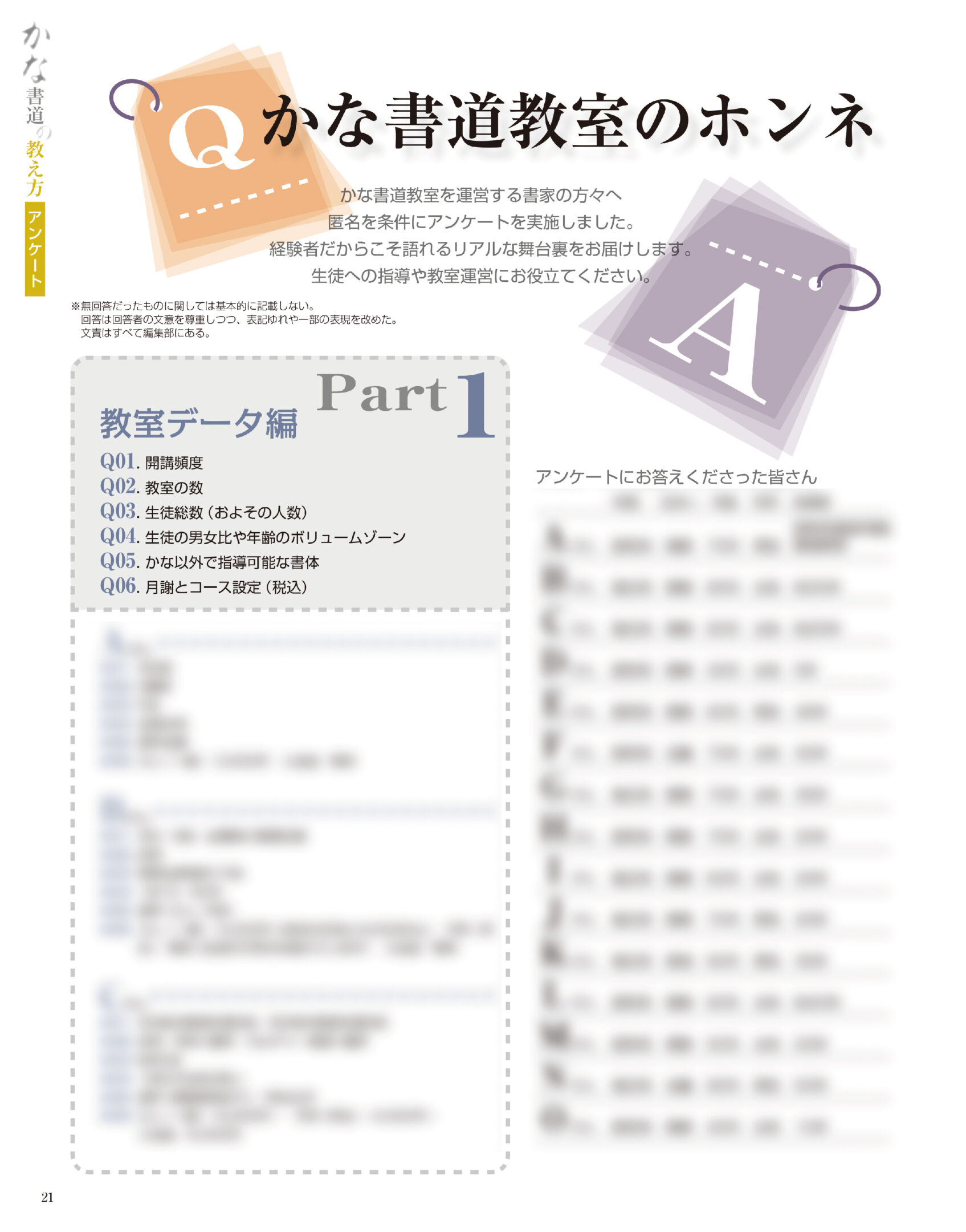 アンケート ★かな書道教室のホンネ