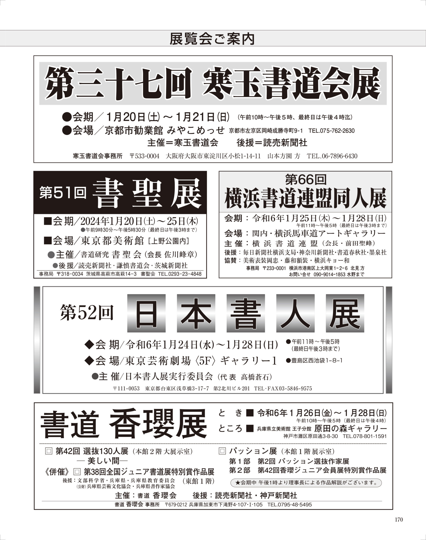 2024年1月〜3月に開催される書道展のご案内